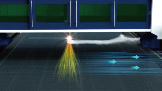 هيكل حماية متعدد الطبقات مزود بنظام مخصص لسحب الغبار. يحقق هيكل سحب الأبخرة الديناميكي المتتبع كفاءة أعلى بنسبة 30% في التقاط الغبار، مما يقلل بشكل فعال من تلوث الأبخرة.
