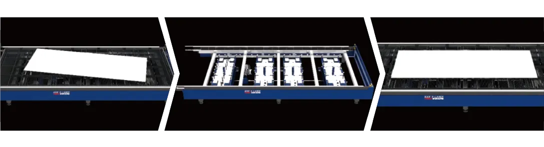يتميز نظام الشفط متعدد المناطق بفعاليته في إزالة الغبار حسب المنطقة، حيث يوزع كمية الهواء من كل مخرج عادم بذكاء على كل حاجز، مما يُحسّن كفاءة شفط وإزالة الغبار في منطقة المعالجة. كما أنه يُقلل بشكل موثوق من خطر تلوث رأس القطع، مما يحافظ على نظافة منطقة العمل.