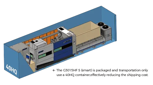 خزانة كهربائية، مصدر ليزر، نظام هوائي، نظام تزييت، محركات طاولة مدمجة في الهيكل الرئيسي، تتميز بمرونة التركيب وسهولة التركيب والصيانة، مما يُحسّن بشكل فعال من معدل استخدام مساحة الإنتاج، ويقلل من مساحة الآلات، مما يوفر تكاليف الشحن.
