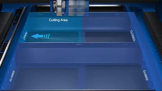 ● التحميل والتفريغ على الطاولة لا يؤثر على الأخرى، مما يضمن جودة قطع جيدة أثناء تحميل أو تفريغ الطاولة الأخرى.