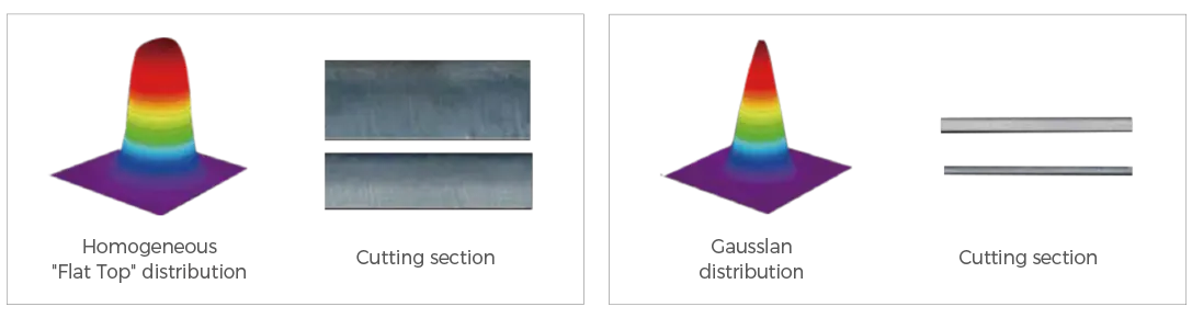 ● البقعة الغاوسية: سرعة القطع بالهواء/النيتروجين أسرع، والحرارة مركزة؛