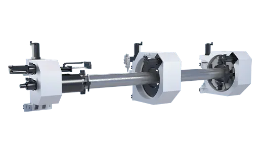 هيكل قوي ومتين وموثوق، يدعم تحميل وقطع وتفريغ أنابيب بطول 12 مترًا، مما يحافظ على دقة الآلة لفترة طويلة. يعتمد على رف وترس دقيقين، ودليل خطي أسطواني لضمان دقة النقل بفعالية.
