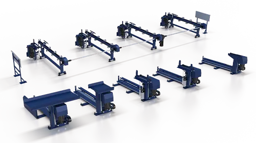 هيكل شبه آلي للتحميل والتفريغ، كتجهيز قياسي، يتميز بسهولة وراحة التحميل وكفاءة عالية. أربع منصات تفريغ عائمة لدعم إضافي، مما يُحسّن دقة المعالجة.